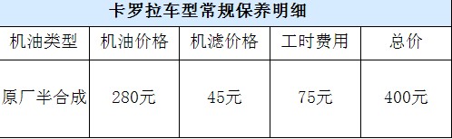 同樣,這臺發(fā)動機在國內服役時間也比較長了,理論上保養(yǎng)費用應該不會太高。而通過調查,卡羅拉每5000公里進行一次機油保養(yǎng)的400元,相比同級車來說算是比較高的,同時卡羅拉享受一次免費的機油機濾的保養(yǎng)。