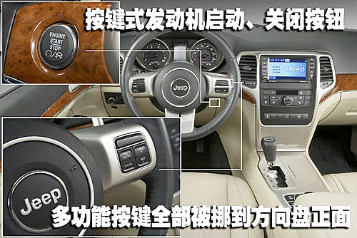內(nèi)飾部分能夠明顯感覺到JEEP針對(duì)時(shí)下大型SUV市場(chǎng)客戶群體喜好所做出的改善,因?yàn)樵熊囆痛_實(shí)是太過于單調(diào)和粗糙了。而新款車型的內(nèi)飾配以淺米色色調(diào)以及精致的真皮座椅和內(nèi)飾襯板以及實(shí)木裝飾,對(duì)于不太喜歡越野的消費(fèi)者來說一定會(huì)更加喜歡JEEP的。
