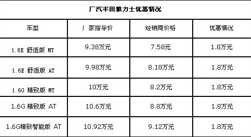近日,筆者從廣汽豐田4S店了解到,雅力士1.6排量車型全系優(yōu)惠1.8萬元,但是現(xiàn)車顏色不全。
