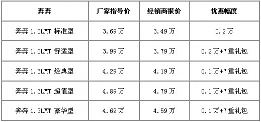 如果說,10萬元左右的緊湊型家用車是合資品牌的必爭之地,那么,5萬元以下的微型車就是自主品牌的天下了。雖然有F0和熊貓、QQ這一系列大敵當前,但奔奔在昆明市場還是占有一席之地的。近日,車天下編輯從云南萬友長安汽車經(jīng)銷商處獲悉,奔奔系列有1000-2000元不等的現(xiàn)金優(yōu)惠,同時還可獲得萬友送出的7重大禮包。