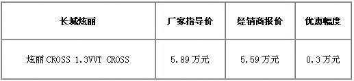 長(zhǎng)城炫麗1.3CROSS直降3000元 小車也拓界