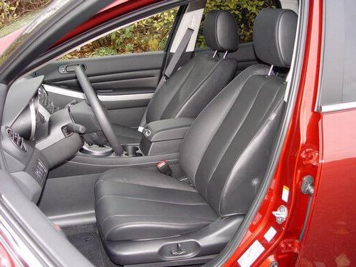 正如前述所提及的那樣,CX-7的內(nèi)飾有了很大提升,采用了新的儀表板和座椅材質(zhì),扶手上的護(hù)墊更軟,儀表采用黑色或金屬質(zhì)感裝飾,新的方向盤增加了包括藍(lán)牙電話在內(nèi)的控制鍵,儀表板旁邊中控臺頂部的3.5英寸信息顯示屏是標(biāo)配,可以顯示暖風(fēng)和收音機(jī)信息。同時駕駛員座椅配備了新的三點記憶功能,前排乘客座椅增加了傾角電動可調(diào)功能。