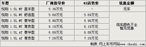 據(jù)長(zhǎng)安汽車(chē)4S店銷(xiāo)售人員介紹,悅翔目前只有五款車(chē)型有現(xiàn)車(chē)銷(xiāo)售,其中包括三款手動(dòng)檔車(chē)型和兩款自動(dòng)檔車(chē)型。售價(jià)5.39萬(wàn)元的悅翔手動(dòng)基本型一直就沒(méi)有現(xiàn)車(chē)銷(xiāo)售,屬于有價(jià)無(wú)車(chē)的狀態(tài)。其他車(chē)型雖然有現(xiàn)車(chē),但個(gè)別顏色仍需要預(yù)訂。長(zhǎng)安汽車(chē)4S店銷(xiāo)售人員表示,目前購(gòu)買(mǎi)悅翔并沒(méi)有任何優(yōu)惠政策。
