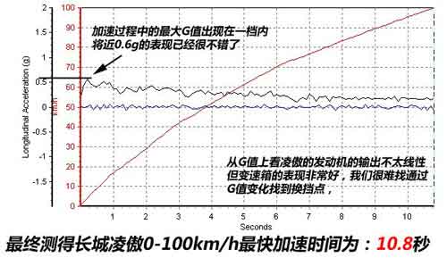 雖說從參數(shù)上看,這款GW4G15發(fā)動機的最大扭矩是出現(xiàn)在4000rpm左右,但在測試時編輯發(fā)現(xiàn)用4000rpm起步后轉速會掉的很多,沒有做到最大扭矩起步的目的。所以編輯嘗試5000rpm起步,凌傲的前輪難以避免的出現(xiàn)了打滑的情況,不過車身抬頭的情況并不是特別明顯,這個轉速起步后,發(fā)動機的轉速雖然也會掉,但離最大扭矩輸出的點比較靠近,所以起步效果比4000rpm還要好一點。最終凌傲0-100km/h的最好加速成績?yōu)?0.8秒,這個成績在這個級別的國產(chǎn)車中是比較靠前的成績!