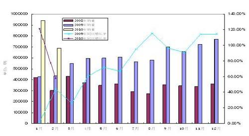 2008-2010年1.6升及以下月度乘用車銷量及變化情況