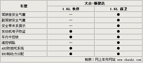 全新捷達(dá)雖然冠上全新二字,但消費者仍然不會對捷達(dá)的配置有非常大的興趣。對于這樣一款進(jìn)行過幾次改型的老車型,配置方面不會有太大變化。在1.6L前衛(wèi)車型上,標(biāo)配了前駕駛員與副駕駛安全氣囊,,保證了前排乘員的安全。駕駛員一側(cè)的安全帶帶有未系提示,時刻提醒駕駛員保證自身安全。全系標(biāo)配的配置還有電子防盜系統(tǒng)、車內(nèi)中控鎖及ABS+EBD系統(tǒng)。1.6L伙伴并沒有裝備安全氣囊,配置較低。