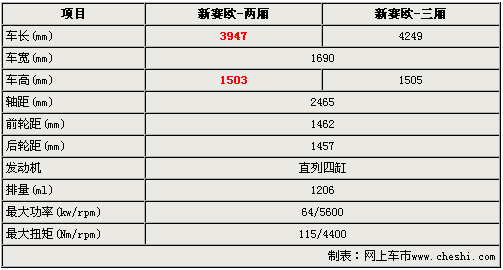 新賽歐兩廂版在保持車身寬度不變的基礎(chǔ)上,將車身長(zhǎng)度和車身高度分別縮短和降低了302mm和2mm。新賽歐兩廂版雖然在車身尺寸方面略有變化,但整車軸距依然與三廂版車型保持一致,達(dá)2465mm。新賽歐兩廂版入門級(jí)車型搭載排量為1.2升的S-TEC系列發(fā)動(dòng)機(jī),最大功率和扭矩分別為64Kw和115Nm,與之相匹配的5速手動(dòng)變速器和EMT半自動(dòng)變速箱。