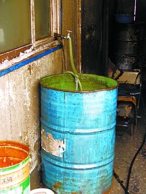 一輛銀色轎車駛?cè),三名穿著雨鞋、懷里抱著幾盤黑色水管的洗車工走出來,其中一個人拖著水管走到洗車店旁的一間小屋里!斑@洗車的中水能洗手嗎?”記者問,“能洗,這是自來水,我們都用它做飯!毕窜嚬み吔庸茏舆呎f,洗車工調(diào)好高壓水槍,一道白色的水流就噴射而出,水花飛濺,車身被沖得發(fā)出“刷刷”的響聲,大量的黑色污水也順著車頂流到地面上,又流進(jìn)污水溝,再由污水溝進(jìn)入下水道。大約兩分鐘后,沖洗結(jié)束。