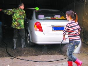 一個水桶、兩塊抹布就搭起洗車的“草臺班子”,高壓水槍四射,近200升的自來水就在這一瞬間被輕巧地洗刷掉了。