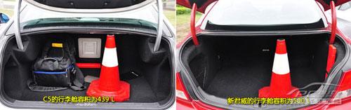 在車身尺寸方面新君威比C5車身長度和高度數(shù)據(jù)要好一些,分別多出25mm和26mm。而軸距上C5卻要長出新君威78mm,也比新君威寬了4mm,在同級車?yán)锩嬉材玫贸鍪,在實際體驗中,C5的后排頭部空間受益于內(nèi)凹處理方式以增加頭部空間,顯得很充裕,所以無論是商用還是家用空間完全夠用,腿部空間也夠用,而新君威由于軸距較短且是運(yùn)動化的定位,后排空間表現(xiàn)并不理想,腿部空間只能說夠用,且頭部空間則略顯局促。
