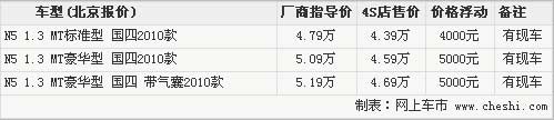 據(jù)天津一汽4S店銷售人員介紹,夏利N51.3L三款車型目前店內(nèi)均有現(xiàn)車,并且有不同程度的大幅度降價(jià)優(yōu)惠活動(dòng),其中1.3L標(biāo)準(zhǔn)版車型購(gòu)車直降4000元,豪華版和豪華版帶氣囊兩款車型購(gòu)車直降5000元。全系車型有銀色、灰色、和藍(lán)色現(xiàn)車。