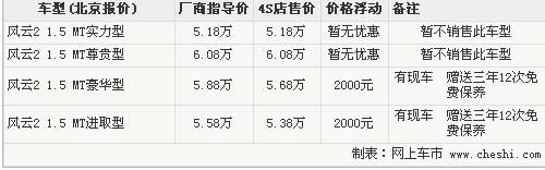 風(fēng)云2兩廂共有4款車型,指導(dǎo)價為5.18萬-6.08萬。根據(jù)奇瑞4S店銷售人員介紹,目前店內(nèi)銷售的車型只有進(jìn)取型和豪華型兩款,現(xiàn)在購車即可享受2000元現(xiàn)金優(yōu)惠,此外4S店還贈送三年12次免費保養(yǎng)。