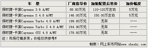 新款車型預(yù)定的火爆以及交車時間較晚讓老款車型的銷售升溫,傳統(tǒng)的新車上市老款車型降價促銷的情況在保時捷卡宴的身上并沒有出現(xiàn)。以北京地區(qū)為例,目前北京市場上老款Cayenne卡宴僅剩20輛左右的現(xiàn)車,因?yàn)樾萝囆吞彳囈却侥甑,所以老款車型在北京市場出現(xiàn)了加價5萬元提車的現(xiàn)象,車型僅有3.6L V6以及S版4.8L V8兩款,其余型號早已售完。
