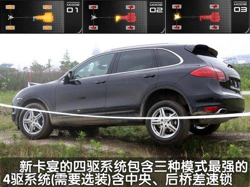 保時(shí)捷卡宴的四驅(qū)系統(tǒng)分為3個(gè)檔位,通常情況下第一種模式就足以讓新卡宴面對(duì)大部分城鄉(xiāng)之間的的路況以及惡略的鄉(xiāng)村公路。而第二和第三種模式分別包含中央差速器鎖以及后橋差速器鎖(需要進(jìn)行選裝),這就意味著新卡宴的惡略路況通過性完全可以與那些以“專業(yè)”著稱的越野車媲美。