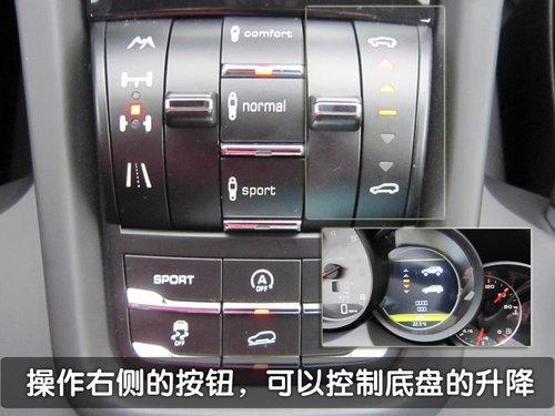 而根據(jù)駕駛者的不同駕駛風(fēng)格以及路況的不同,新卡宴沿用了老卡宴的充氣懸架系統(tǒng)能夠在較低和較高的離地間隙中進(jìn)行調(diào)節(jié)。此時(shí)操作充氣懸架的工作需要駕駛者手動(dòng)完成,在變速器桿的下方非常明顯的位置是控制車輛4驅(qū)狀態(tài)和懸架高低的部分。調(diào)節(jié)的時(shí)候車輛的儀表盤也會(huì)做出相應(yīng)的提示。