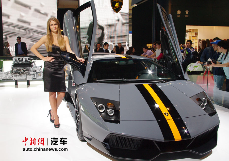 在人流如織的海外汽車巨頭的展館里,天價(jià)豪車成了當(dāng)仁不讓的最搶眼明星,相形之下即使再靚麗的車模也黯然失色。圖為蘭博基尼Murciélago LP 670-4 SuperVeloce