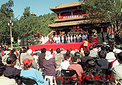 北京民眾二日在景山公園參加國(guó)慶游園活動(dòng)時(shí),觀看各文藝團(tuán)體的精彩演出,歡渡國(guó)慶節(jié)假日。