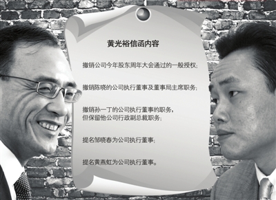 8月5日,國美電器公告,將對公司間接持股股東及前任執(zhí)行董事黃光裕提出法律訴訟,包括關(guān)于其于2008年1月及2月前后回購公司股份中被指稱的違反公司董事的信托責(zé)任及信任的行為尋求賠償。公告同時披露,黃光裕要求撤銷陳曉的公司執(zhí)行董事和董事局主席職務(wù)、撤銷孫一丁的公司執(zhí)行董事的職務(wù),但保留他為公司行政副總裁職務(wù)等動議。這份火藥味十足的公告,被稱為是黃光裕與國美電器現(xiàn)任董事局主席陳曉決裂的標志。