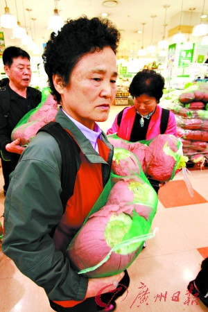 當(dāng)日,該超市以每棵2500元韓元(約合人民幣15元)的低價限量供應(yīng)300棵白菜,在10分鐘內(nèi)被搶購一空。