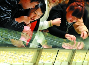 售貨員告訴記者現(xiàn)在賣(mài)得最好的黃金品種就是金條,由于賣(mài)場(chǎng)的銷(xiāo)售價(jià)格比國(guó)際金價(jià)有個(gè)滯后期,所以現(xiàn)在總有人急著出手,趕在下次漲價(jià)之前“藏”金條,而且現(xiàn)在出手越來(lái)越大,100克的金條成為“藏金族”的最?lèi)?ài)。