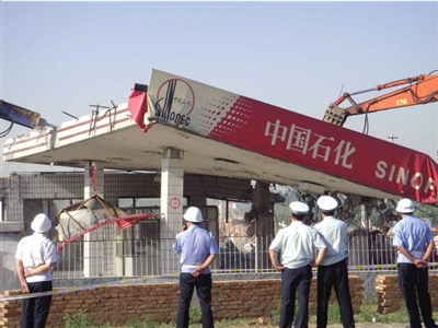 中石化北京分公司相關(guān)負(fù)責(zé)人介紹,該加油站此前被列入一條在建輕軌的規(guī)劃范圍,公司準(zhǔn)備與相關(guān)部門(mén)商討采取“拆一還一,先建后拆”的模式,但一直未能和相關(guān)部門(mén)達(dá)成協(xié)議。此次加油站突遭強(qiáng)拆,中石化北京分公司方面表示難以接受。