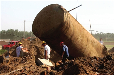 早7點(diǎn)左右,加油站負(fù)責(zé)人趕到現(xiàn)場(chǎng)并報(bào)警。加油站負(fù)責(zé)人董女士說(shuō),站內(nèi)有4個(gè)地下油罐,拆遷時(shí),4油罐內(nèi)還有2000多升油品!斑@種強(qiáng)拆法是很危險(xiǎn)的!倍空f(shuō)。至昨天下午5點(diǎn),強(qiáng)拆仍在繼續(xù)。