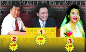 今年將首次有1000位富豪上榜,比起去年多了足足200人,系列子榜共有14個。提前曝光的今年前三強中,39歲的國美集團董事局主席黃光裕以430億元的身家問鼎中國首富,這也是他繼蟬聯(lián)2004—2005年中國首富后,第三次當上中國首富。在“胡潤百富榜”十年的歷史中,除了黃光裕之外,只有榮智健家族曾三次當首富。評價黃光裕,胡潤表示,“他的最大特點是對自己企業(yè)的戰(zhàn)略模型和戰(zhàn)略計劃很清晰!