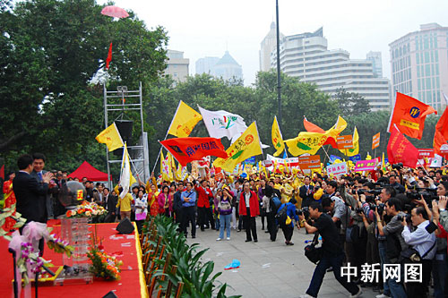 中新網(wǎng)廣州2月23日電(記者 莫非 通訊員 月明 梁婕 鐘山)廣東旅游業(yè)界2009年大利好浮出水面,國(guó)民旅游休閑計(jì)劃23日開始正式實(shí)施。廣東省各大旅業(yè)集團(tuán)、旅行社紛紛積極響應(yīng),召集了來自珠三角地區(qū)4000多名游客聚集在廣州中山紀(jì)念堂前參加啟動(dòng)儀式。