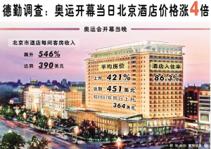 從8月底開(kāi)始,隨著各國(guó)運(yùn)動(dòng)員、教練員、觀眾及記者的陸續(xù)離京,北京各大賓館入住率必然出現(xiàn)一定程度的下降,酒店價(jià)格的大幅度跳水也是必然趨勢(shì)。