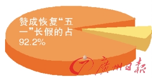 據(jù)了解,兩會以來,已有數(shù)十名代表委員在兩會的各個場合為“五一”黃金周大聲疾呼。而在網(wǎng)上的調(diào)查中,網(wǎng)民對恢復(fù)“五一”黃金周的提議支持率也很高,在人民網(wǎng)“你是否贊成恢復(fù)‘五一’長假”的調(diào)查顯示,共有500多萬名網(wǎng)友參與了網(wǎng)上調(diào)查,其中贊成恢復(fù)“五一”長假的占92.2%。