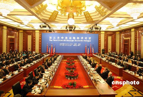 中新網(wǎng)北京12月12日電(記者 王巖 俞嵐 翁陽) 第三次中美戰(zhàn)略經(jīng)濟(jì)對話十二日在北京舉行,中國國務(wù)院副總理吳儀和美國財(cái)長保爾森主持會議。