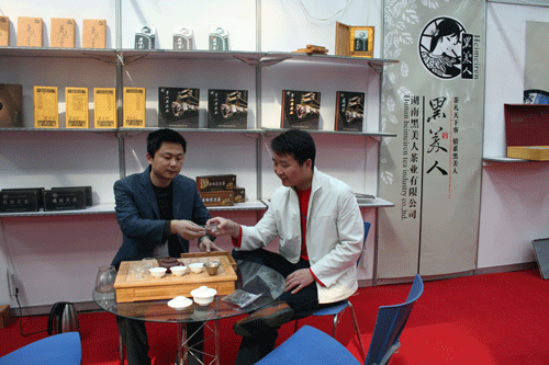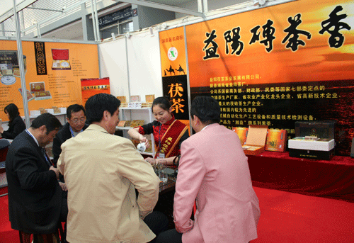 湖南益陽(yáng)黑茶展臺(tái)設(shè)在西洽會(huì)的B2區(qū),特色的茶具,古色古香的茶葉包裝展覽,使得整個(gè)展區(qū)彌漫著黑茶歷史文化的氛圍。益陽(yáng)是全國(guó)最早也是湖南最大的黑茶產(chǎn)區(qū),黑茶歷史文化資源十分豐厚,這里是中國(guó)第一塊黑磚、第一塊花磚、第一茯磚的誕生地,而益陽(yáng)安化還是古絲綢茶路與茶馬古道的起始點(diǎn)、出發(fā)地,至今保留許多有重大歷史文化遺產(chǎn)價(jià)值的文物古跡,也是至今世界唯一的千兩茶生產(chǎn)地,2006年2月14日中央電視臺(tái)《鑒寶》欄目展出一簍53年前產(chǎn)自安化白沙溪茶廠的天尖,專家評(píng)價(jià)48萬(wàn)元并被競(jìng)買(mǎi)走,轟動(dòng)了全國(guó)茶葉界和收藏界。一直以來(lái),黑茶是湖南的主要茶類,年產(chǎn)量達(dá)2.5萬(wàn)噸,占全國(guó)總量的50℅以上,為保障邊疆少數(shù)民族地區(qū)人民生活需要和邊疆地區(qū)的穩(wěn)定、繁榮,維護(hù)國(guó)家民族團(tuán)結(jié)作出了重大貢獻(xiàn)。(廖艷瓊)