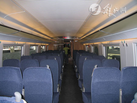 坐上列車,座椅猶如飛機(jī)經(jīng)濟(jì)艙座椅,前有可放下的桌子、椅子也可往下躺,同時(shí)還可以360度旋轉(zhuǎn)。每列京津城鐵均掛8節(jié)車廂,每節(jié)車廂都設(shè)置了寬敞的衛(wèi)生間。雖然從0到350公里/小時(shí)只需要幾分鐘,但由于車窗設(shè)計(jì)了減速玻璃,大多人還是感覺(jué)不出來(lái)車速,而且設(shè)計(jì)師在設(shè)計(jì)時(shí)還更多地考慮了安全性與舒適性,因而在行車過(guò)程中,旅客根本不需要帶安全帶,還可以自由走動(dòng)。抬頭一看車廂兩側(cè)的顯示屏,卻可以驚喜地發(fā)現(xiàn)車速已達(dá)334公里/小時(shí)了。