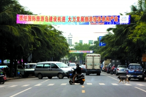 1月15日,博鰲街頭,建設(shè)國(guó)際旅游島的橫幅隨處可見(jiàn)。