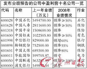 由于去年整體經(jīng)濟(jì)形勢的影響,上市公司業(yè)績普遍下滑已成不爭的事實。根據(jù)天相投顧最新統(tǒng)計,截至25日,滬深兩市共有1009家上市公司披露去年財務(wù)狀況,其中,在93家公布年報的公司中,除7家公司虧損外,其余86家公司去年均實現(xiàn)盈利,而且40家公司去年歸屬于母公司所有者的凈利潤實現(xiàn)增長。已披露年報公司2008年實現(xiàn)歸屬于母公司所有者的凈利潤合計143億元,較上年同期增長了15.6%。此外滬深兩市916家上市公司發(fā)布了2008年報業(yè)績預(yù)告,其中41%的公司為預(yù)增或預(yù)盈。