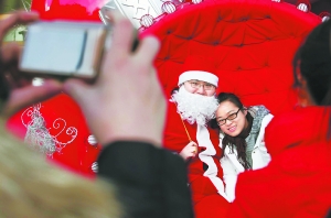 19:00,禮品店。單身男顧客猶豫不決,不知道該送什么圣誕禮物給女朋友;一旁店員小姐大力推薦一款紅色的毛絨牛玩具,標(biāo)價(jià)98元。小姐振振有詞地說:今年經(jīng)濟(jì)危機(jī),股市下跌搞得大家心情都不好,買什么禮物都不如買“紅!保认笳髁嗣髂甑膶傧,又有“牛氣沖天”的好口彩。記者發(fā)現(xiàn),近日來(lái)各種“牛”造型的玩具、工藝品在公司抽獎(jiǎng)、朋友送禮時(shí)都成了主角,看來(lái)西方的圣誕文化也要融合中國(guó)特色。