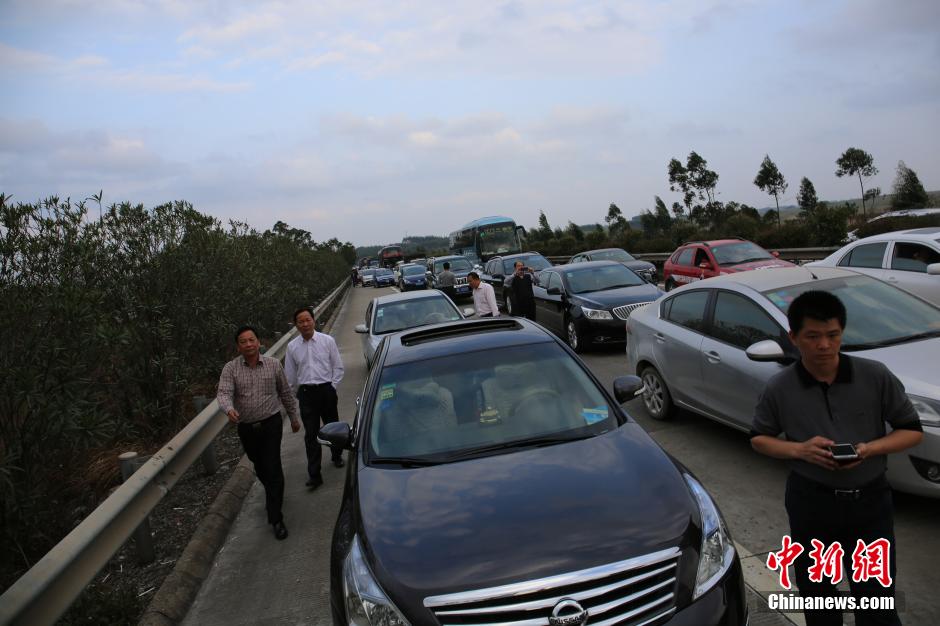 春運(yùn)返程粵贛高速南下公路擁堵 車(chē)主下車(chē)遛狗