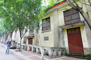 重慶大學(xué)A區(qū)后校門樹陰掩映,鳥鳴啾啾中,一棟黃色墻體、灰色瓦頂?shù)睦辖ㄖP立。旁邊碑刻顯示,“七七抗戰(zhàn)大禮堂”已歷經(jīng)72年風(fēng)雨。