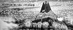 繪制長卷前后歷時四年,中間數(shù)易其稿,嘔心瀝血,終于在今年完成了這幅高18.5米、長80多米的《唐山大地震祭》巨幅長卷。長卷分為地震將臨、神兵天降、自救互救、八方支援、傷員外運、清尸防疫、恢復生產(chǎn)、重建家園、再組家庭、歡送親人十部分。為表現(xiàn)唐山地震中的磨難,我們以“祭”字為切入點,展示唐山人在大悲大痛面前的壯烈激昂,以黑白為基調,全景式地展現(xiàn)凝重悲壯的場景,勾勒出母親的哀慟、孩童的驚恐、人們絕望而又渴生的奮爭,以及在那死亡彌漫的廢墟間閃動著無數(shù)紅領章和五角星,讓觀者如身臨其境。當年唐山抗震救災指揮部副總指揮遲浩田將軍特為畫卷題詞:“那萬眾一心,共赴危難的感人情景,令我終生難忘!