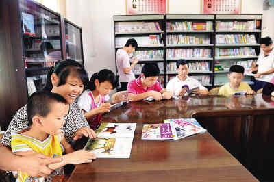 廣東梅縣松源鎮(zhèn)橫坊村村民在“農(nóng)家書屋”充電。鐘小豐攝(新華社發(fā))