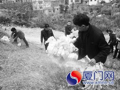 農(nóng)歷三月初三那天,他們掃墓的方式和清明掃墓是一樣的:先是由后人“掛紙”(在墳?zāi)股蠏旒埐,后改為壓紙?作為上墳的標(biāo)志。掛紙之前,先鏟除墓上叢生的雜草,再將紙帛兩三張一疊折成波紋狀,再用小石塊壓在墳上。如果說墳?zāi)故亲嫦人篮缶幼〉膱鏊,那么壓紙就象征著子孫們一年一度為祖先的居所增添新瓦。掛完紙,再準(zhǔn)備簡單的供品祭墓,然后燒紙錢,兒孫們在祖先墓前跪拜行禮,這樣既盡了子孫孝道,也祈求祖先護(hù)佑子孫平安如意。