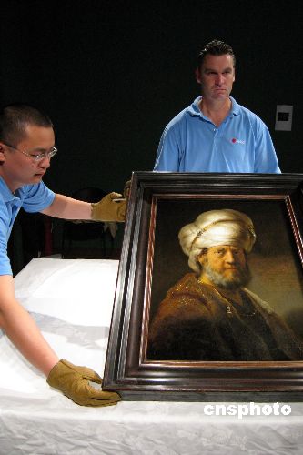 十七世紀(jì)荷蘭繪畫大師倫勃朗的代表作“東方人”十月二十五日亮相上海博物館!昂商m阿姆斯特丹國立博物館珍藏展”十一月三日起在上博舉辦,將展出十七世紀(jì)荷蘭油畫、版畫、銀器等珍貴文物,其中包括倫勃朗本人及其畫室的四件油畫作品和二十幅銅版畫精品。這是倫勃朗作品首次來華展出。中新社發(fā) 姜煜 攝