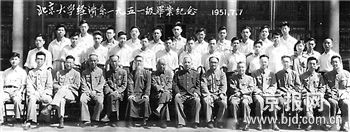 一個月后,我所在的經(jīng)濟系四年級同學(xué)即將畢業(yè)。大家懷著對新上任的馬校長和全系教師依依不舍的惜別之情,提出邀請馬校長和全系教師同我們一起合影。7月1日,在孑民堂前,中國照相館的高級技師為我們精心地拍攝了一張畢業(yè)紀念照。在北大一百周年校慶舉辦的校史展覽會上和新成立的校史館里,都將這張照片放大展出,十分引人注目。