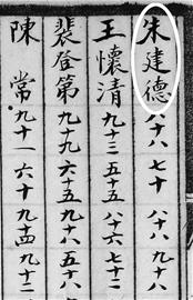 在 《四川省城高等學(xué)堂體育學(xué)堂甲乙兩班學(xué)生積分表》上,記者找到了朱德的學(xué)習(xí)成績記錄,不過成績單上使用的名字是朱建德。這份成績單共列出了朱德修身、國文、教育、心理、生理、兵學(xué)、器械等13門學(xué)科的成績,其中器械課的成績最好,達到滿分一百,心理課成績也有98分。全班52人中,朱德的總成績位居第10名。