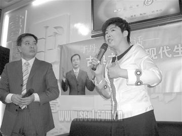 昨日上午,中華書局在圖書訂貨會上邀請著名學(xué)者于丹前來捧場,于丹又拉上自己的校友、同為著名學(xué)者的康震,兩人一起進(jìn)行了一場名為“古典之美與現(xiàn)代生活”的學(xué)術(shù)對話。話題所限,他們的對話內(nèi)容比較專業(yè)和枯燥,現(xiàn)場反應(yīng)比較極端,有些聽眾昏昏欲睡,另一些卻拿起筆記本記下“名人語錄”。還有不少聽眾開始在臺下議論起這個(gè)“學(xué)術(shù)超女”的衣著打扮,“她穿的衣服好像餐館的制服哦”,“于丹皮膚不怎么好,她應(yīng)該買好點(diǎn)兒的化妝品!