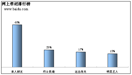 而祭祀的對象,最高的是親人朋友,占到了48%。其次是烈士英雄、遠(yuǎn)古祖先和明星藝人,分別占20%、17%、15%。
