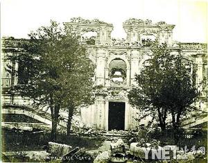圓明園于1860年被英法聯(lián)軍焚毀之后是片瓦不留,還是另有景象?三張1875年拍攝的圓明園西洋樓諧奇趣景區(qū)原版老照片就是答案:雖是殘?jiān)珨啾,但西式建筑的外輪廓、精美的雕刻和噴泉水池依然清晰。這三張圓明園老照片和另外三張清漪園(頤和園前身)的原版老照片將在北京華辰2008年春拍中被拍賣。
