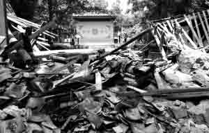“我好像聽到李白故居在哭泣!苯褪形幕值囊晃还ぷ魅藛T昨日痛心地表示。有李白故里之稱的江油市發(fā)生6.0級余震后,記者在“青蓮故居”看到,從唐朝一直保留下來的李白幼時居所的山門全部倒塌變成廢墟,李白的臥室和書房也千瘡百孔。據(jù)四川文化系統(tǒng)最新統(tǒng)計,汶川地震造成四川省的文物古跡大面積損毀。全省至少有45處全國重點文物保護單位和59處省級文物保護單位遭受嚴(yán)重?fù)p失。