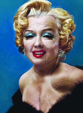 上世紀(jì)50年代的性感女神瑪麗蓮·夢(mèng)露1962年去世時(shí)年僅36歲,如果她活到現(xiàn)在,將有82歲。她同樣也難逃“時(shí)間之斧”的摧殘。照片中的她皮膚松弛,滿臉皺紋。不過(guò),或許由于曾施行了整容手術(shù),在涂抹了濃厚的唇膏和藍(lán)色眼影之后,夢(mèng)露的微笑依然能找到當(dāng)年性感痕跡。然而,由于老年夢(mèng)露身體已經(jīng)明顯皺縮,她身上那件時(shí)髦的緊身低胸禮服顯然已不合尺寸,仿佛隨時(shí)都有掉下來(lái)的可能。