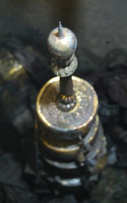 塔剎露出來后,曾主持過雷峰塔地宮考古的專家黎毓馨說,這是一個銀鎏金的七寶阿育王塔。但南京的工藝美術(shù)大師王殿祥提出了質(zhì)疑,他認(rèn)為這尊鎏金塔王是銅鎏金,而不是銀鎏金。奚三彩說,這尊塔表面鎏了金是肯定沒問題的,但里面是銅的還是銀的,目前還不能肯定,要等它完全被取出來以后,拿到科學(xué)儀器上檢驗一下才知道。